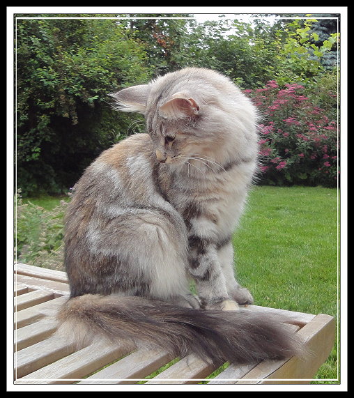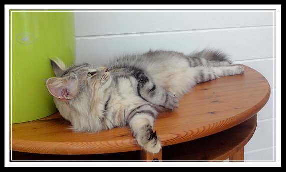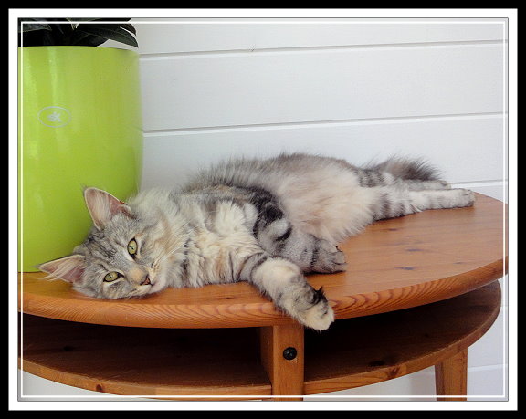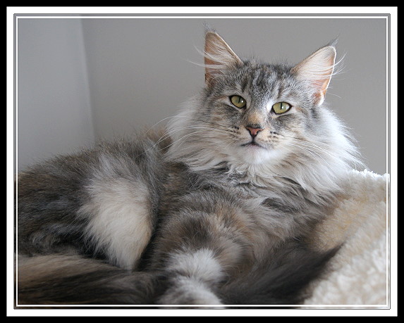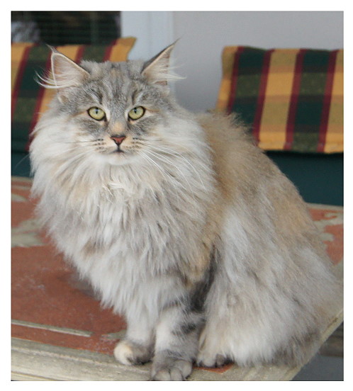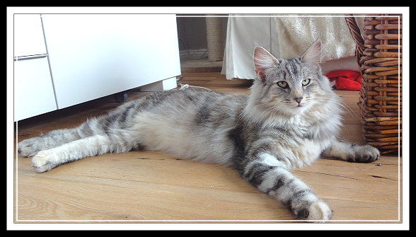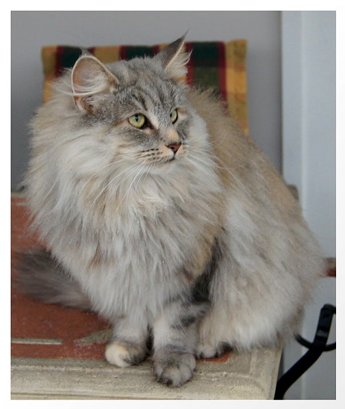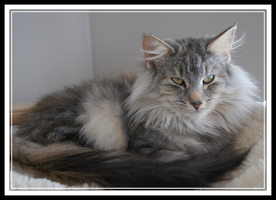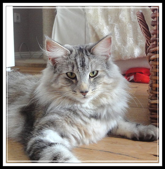 Vorfahren finden. Sie hat ein schönes helles Silber, schön platzierte große Ohren mit Pinseln und einen ausgesprochen liebenswerten Charakter. Mary is a cat from Sweden with an interesting pedigree, containing some well known ancestors. We like her beautiful silver colour, her well